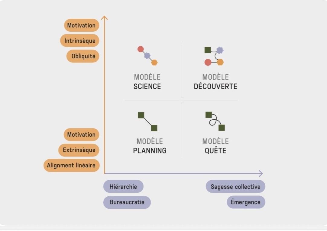 Le modèle Quête signifie que l’entreprise a un objectif clair, une finalité définie, mais que les moyens et la stratégie pour y arriver, en revanche, sont flexibles, peuvent être adaptés à la créativité et aux besoins des acteurs de l’écosystème. C’est le cas d’organisations qui donnent une large place à la responsabilisation, à l’autonomie, à la créativité, tout en ayant une finalité très claire. L’entreprise Google, pour la citer une fois encore - mais elle n’est de loin pas la seule - fonctionne sur ce modèle dans sa politique RH. En effet, dans certains secteurs, les employés savent ce qu’ils doivent faire, mais libre à eux de décider comment. L’institution scolaire doit selon nous sérieusement réfléchir à recourir à ce modèle pour tempérer son modèle planning. Dans de nombreux pays, les directions d’établissements sont corsetées par des directives de niveau supérieur, les enseignants empêchés de manifester toute leur envergure pour les mêmes raisons. Le résultat, discret mais nocif, est souvent celui du désengagement, de la démotivation et du burnout. Favoriser une culture de l’autonomie - donc de l’équilibre entre responsabilité et pouvoir - à tous les niveaux de l’édifice scolaire est la meilleure manière de favoriser la motivation intrinsèque, source de satisfaction véritable et de Joie, pour parler comme Spinoza.